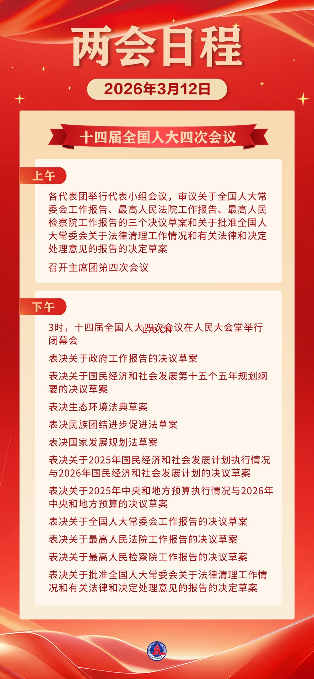 两会日程预告 | 3月12日:十四届全国人大四次会议闭幕