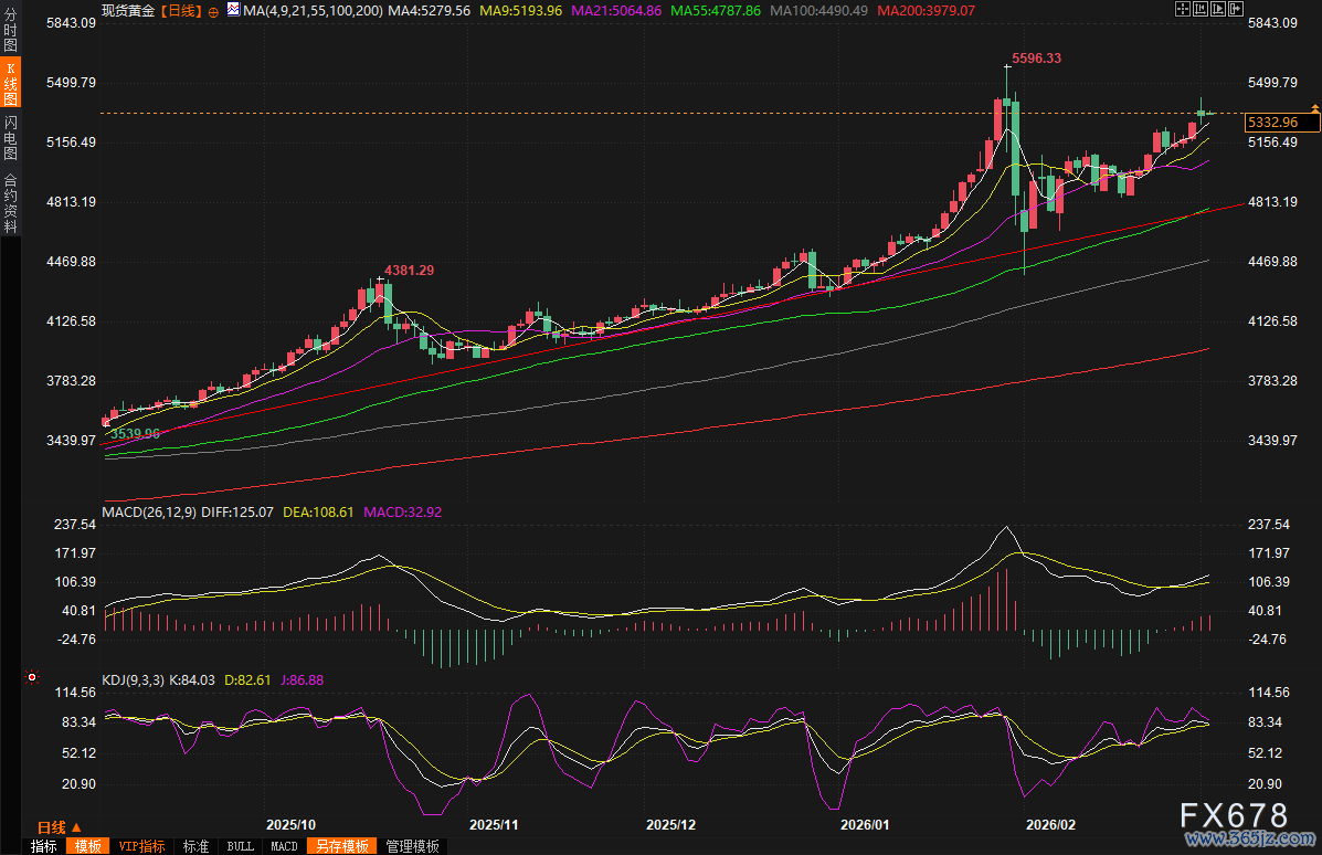 (现货黄金日线图,来源:易汇通)北京时间07:40,现货黄金现报5332.44美元/盎司。