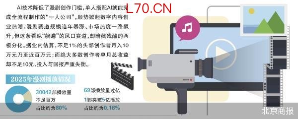 AI技术降低了漫剧创作门槛,单人搭配AI就能完成全流程制作的“一人公司”,顺势掀起数字内容创业热潮,漫剧赛道规模连年暴涨、市场热度一路飙升。但这条看似“躺赚”的风口赛道,却暗藏残酷的两极分化。据业内估算,不足1%的头部创作者月入10万元乃至近百万元;而绝大多数创作者单月总收益却不足10元,投入与回报严重失衡。