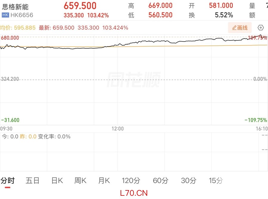 思格新能源首日收盘报659.5港元,来自同花顺。