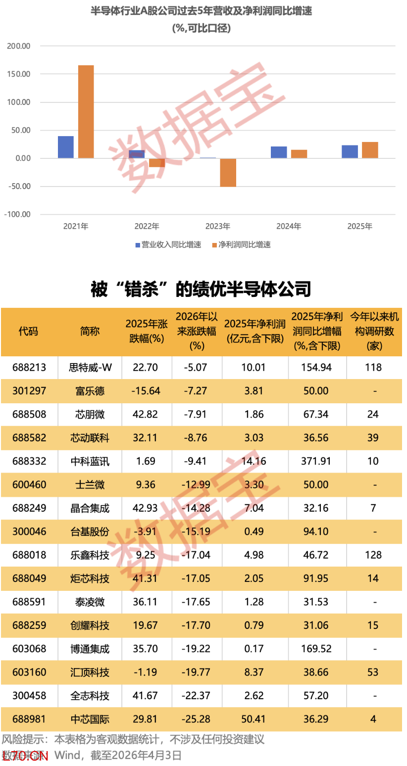 半导体行业营收及净利润加速增长 16只被“错杀”的绩优股曝光
