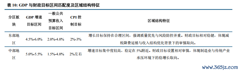 在财政约束背景下,GDP目标与财政收入目标之间的“匹配度”成为衡量增长含金量的重要指标。各分区普遍存在一定“剪刀差”,显示出在减税降费延续、地产收入调整和债务约束强化背景下,财政目标设置更加稳健。整体宏观组合呈现“稳增长、审慎财政、温和价格”的特征。地方政府在控制风险与保持活力之间寻求平衡,通过结构性政策工具与重点项目安排托底增长,同时避免“大水漫灌”式刺激。增长的可持续性更多取决于产业盈利能力修复与税基扩展,而非单一投资扩张。