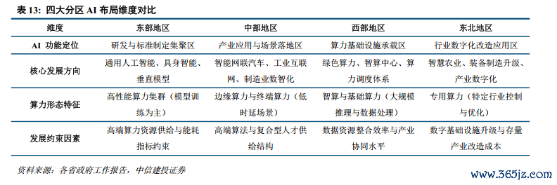 人工智能作为新质生产力的重要组成部分,其区域布局同样呈现分工格局。根据四大分区AI布局维度对比表,各区域在功能定位与算力形态上形成差异。