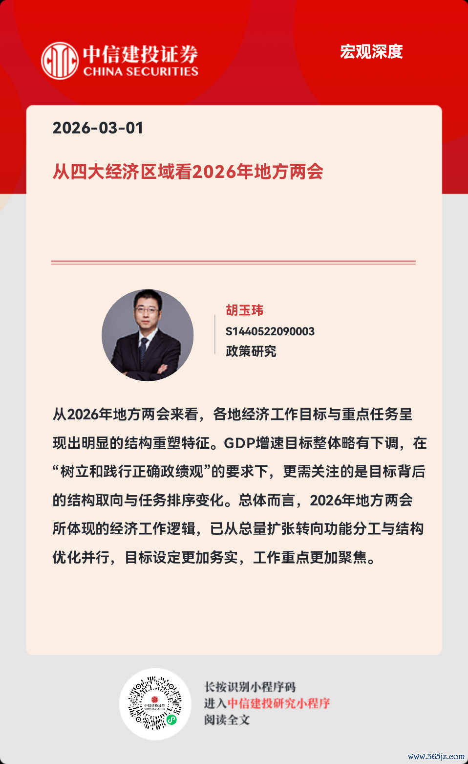 总体而言,2026年的地方经济工作目标与重点安排体现出“稳中优化”的主线。在外需承压与全球风险溢价上升的环境下,中国经济更多依靠内需修复、产业升级与制度优势维持韧性。地方政府在财政空间有限的条件下,通过审慎设定目标、强化结构导向与守住民生安全底线,实现增长与风险防控并行推进。尽管宏观环境波动可能加剧,但增长方向更加清晰,结构性机会逐步显现。对于未来一阶段而言,把握区域分工深化、科技创新加速与内需扩展带来的中长期机遇,将成为理解2026年宏观走势的重要视角。