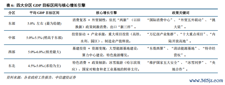 总体来看,四大分区在GDP目标区间上形成“稳中有差”的结构,在增长引擎上则呈现出“消费型—承接型—资源型—修复型”的分化格局。这种结构差异为全国层面形成互补型增长体系奠定了基础。