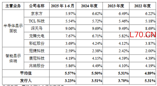 近年来,惠科股份的研发费用率连续下滑。2022—2024年,公司研发费用分别为14.31亿元、13.24亿元、14.15亿元,研发费用率从5.31%降至3.51%,2025年上半年进一步降至3.23%,不仅低于行业平均5.57%的水平,也远远落后于京东方、TCL科技的研发投入强度。