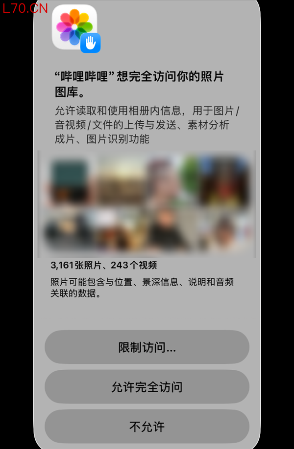 比如在 iOS 系统里,无论 App 是想要获得 “允许访问所有照片” 还是仅仅 “选中的照片” 的操作权限,iOS 都基本会有一个强制弹窗提示。