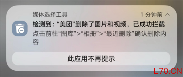 有些运气好的用户,系统起码还能检测到删照片行为并且拦截提醒你,而要是你手机上没有拦截提醒,那照片可就真的说没就没了。。。