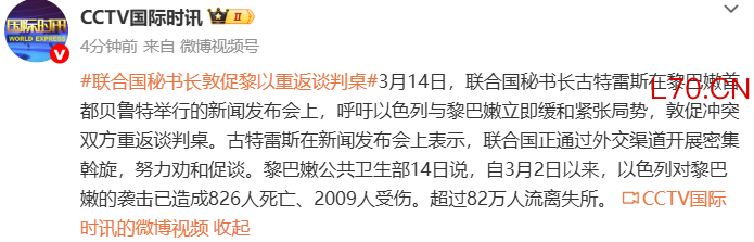 联合国秘书长敦促黎以重返谈判桌