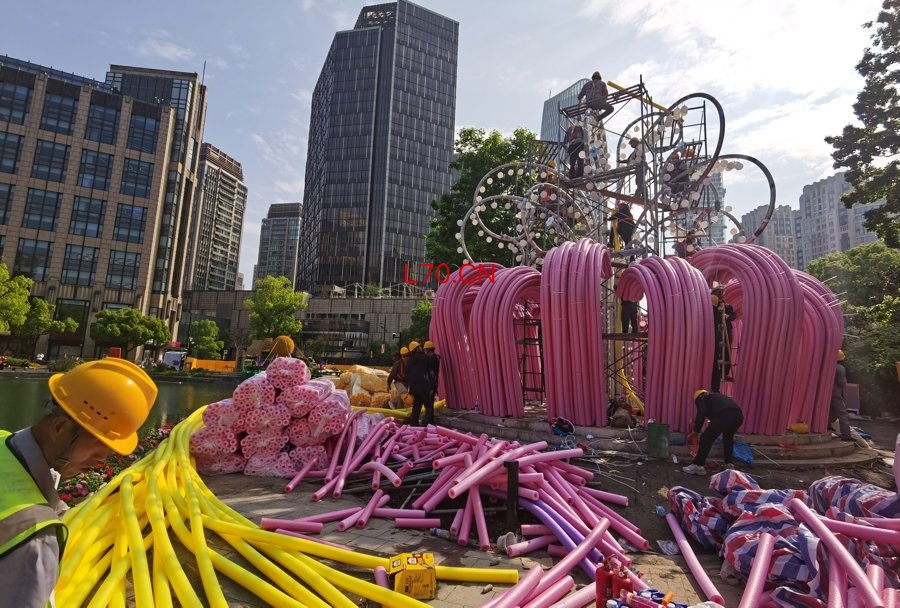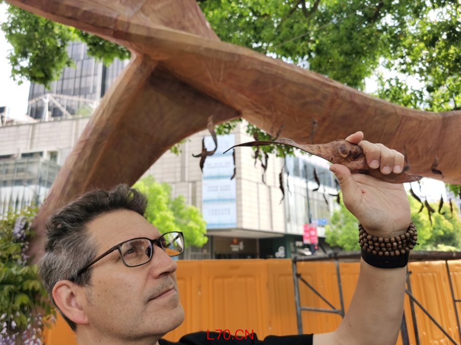 马库斯・詹奇是玛莎・施瓦茨及合伙人景观设计事务所的首席设计师。在新天地太平湖畔,他带领的设计团队将数百捆粉色和黄色的泡沫塑料条切割、塑形,套在钢架上,变成了逼真的白玉兰花蕊。