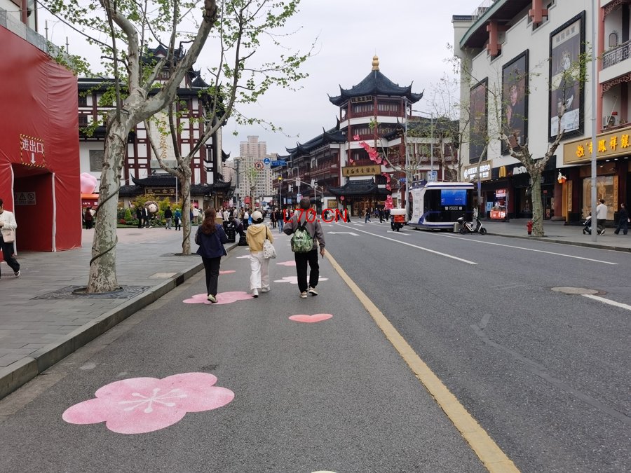 城隍庙旅游区的道路贴上了花。 陈玺撼摄