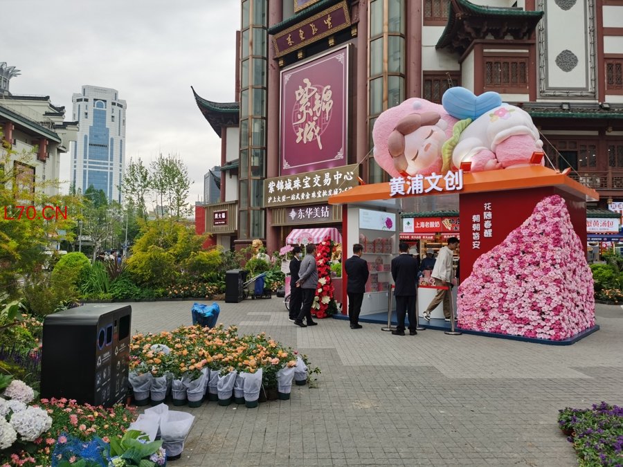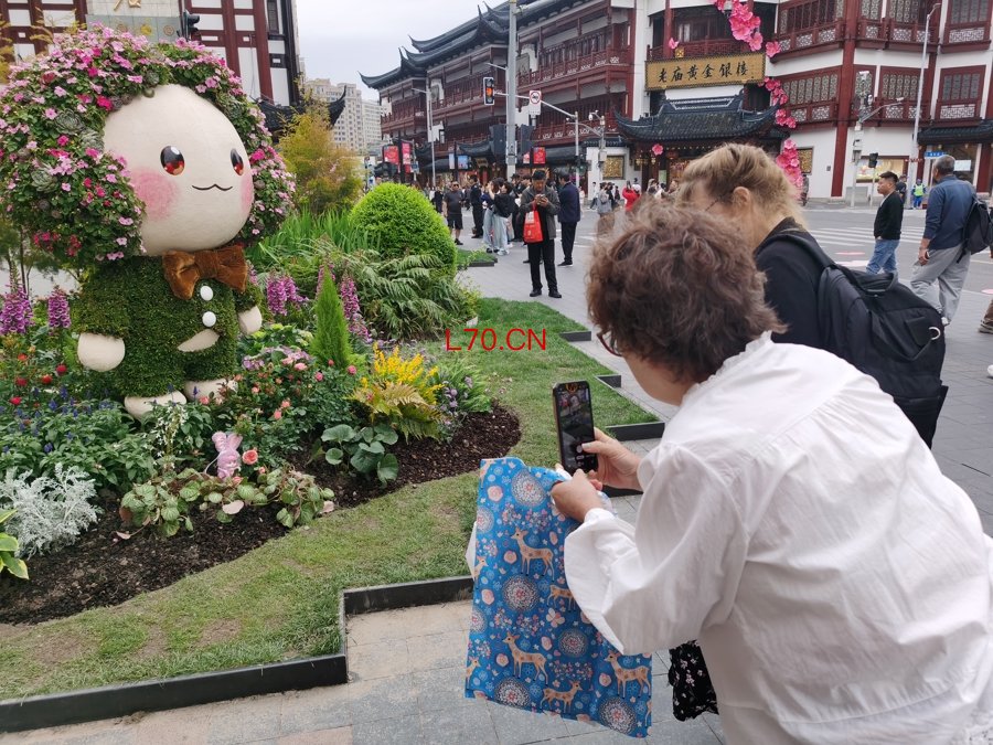 城隍庙旅游区内设置了花宝宝花境,为商圈引流。 陈玺撼摄