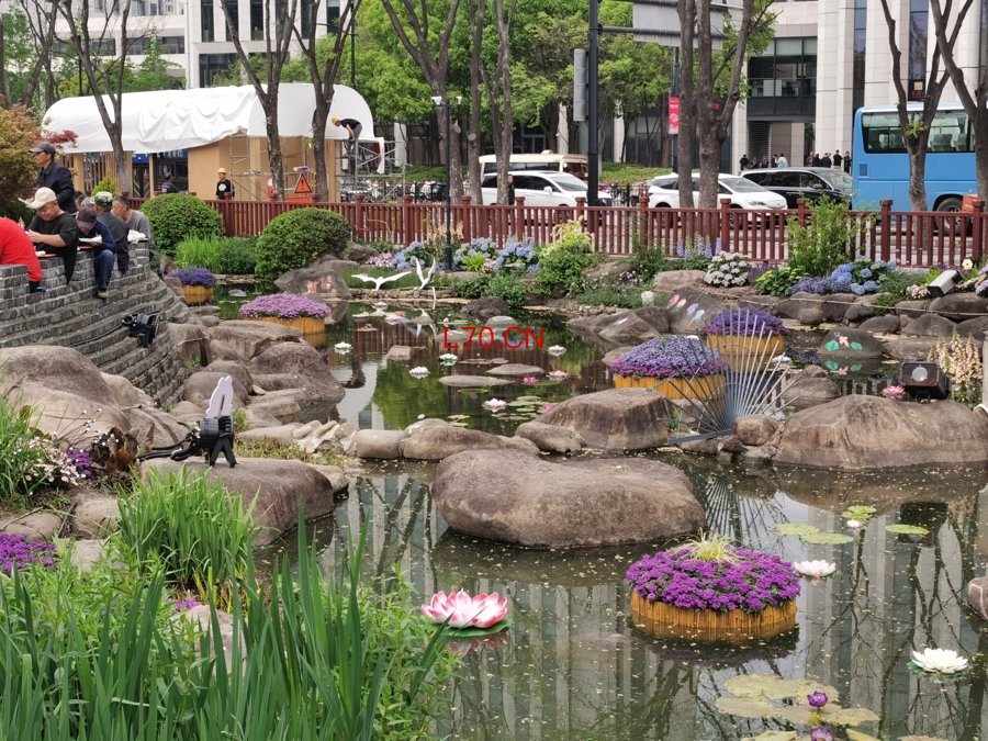 在古城公园的主入口大桥旁,共青森林公园把公园里的“网红”莫奈花园“复制”了过来。