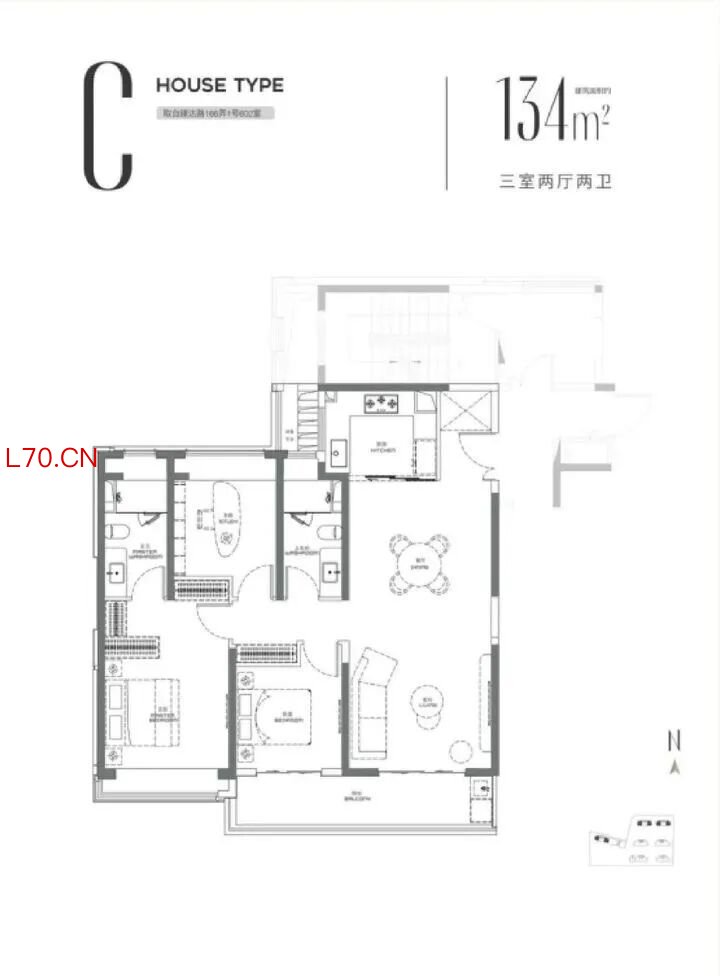 建面约134㎡3房2厅2卫
