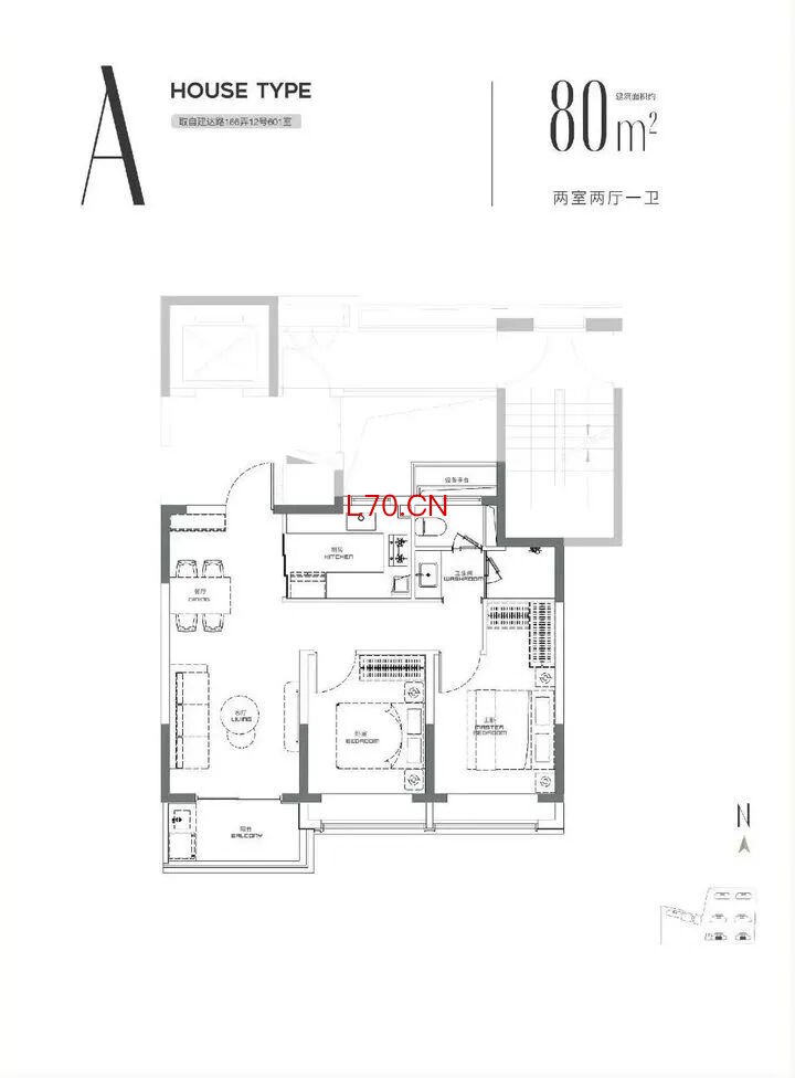 建面约80㎡2房2厅