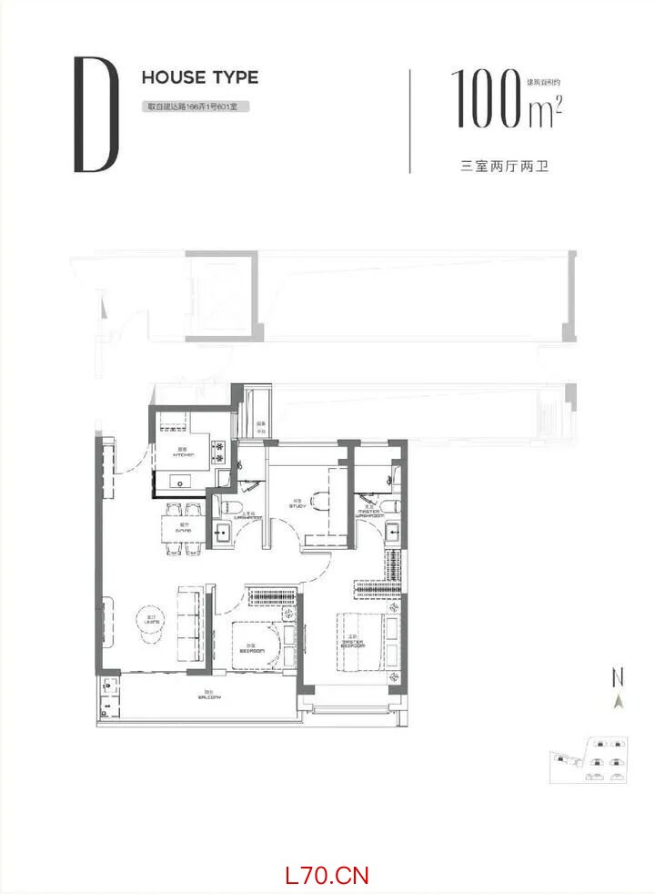 建面约100㎡3房2厅2卫