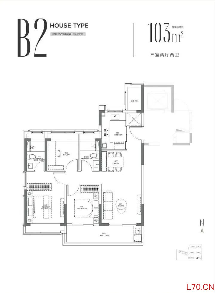 建面约103㎡3房2厅2卫