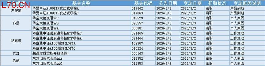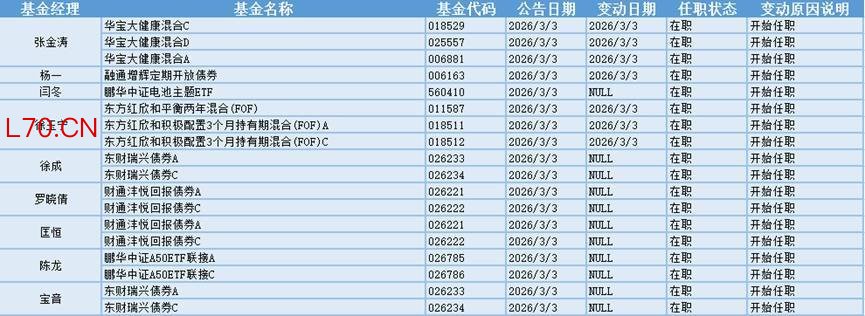 基金经理是一只基金产品最核心的成员,能决定一只基金的投资方向、投资策略以及投资风格,基金经理出色的择时选股能力和调研预测能力是基金业绩的有力保证,所以基金经理是投资者在选择基金产品时的重要参考依据。基金经理的变动很大程度上会影响到基金产品未来的表现,是一个需要特别关注的信息。3.3日共有14位基金经理发生任职变动。